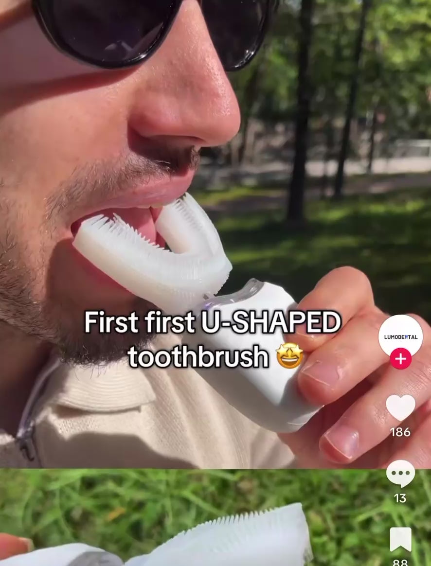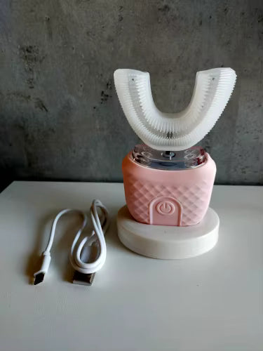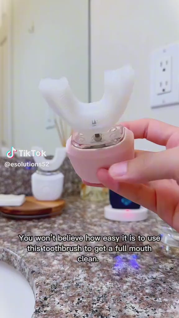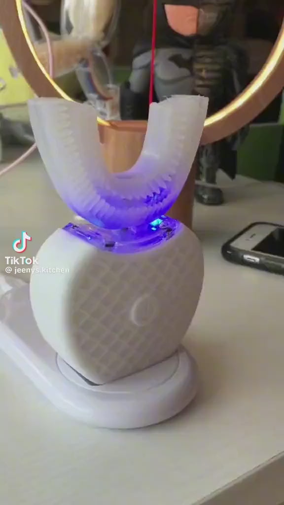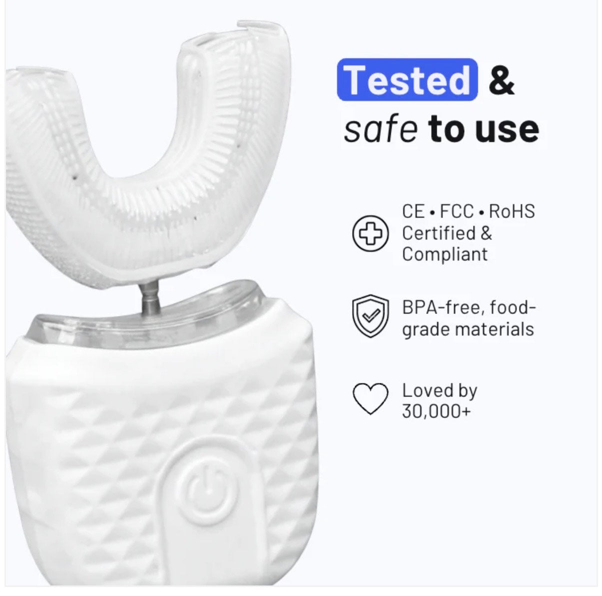 Our electric toothbrush is U-shaped to fit your teeth perfectly. Its innovative shape is designed to adapt to all teeth types.